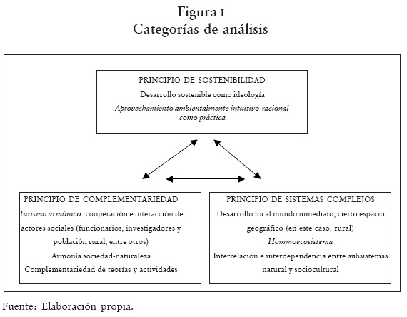 En este contexto, el presente artículo corresponde a los avances de la propuesta teórico-metodológica elaborada en la investigación "Desarrollo, sostenibilidad y turismo en una comunidad lacustre del Valle de Toluca; caso: San Miguel Almaya, Estado de México" (Serrano, 2006), la cual se llevó a cabo dentro del programa de doctorado en ciencias ambientales de la Universidad Autónoma del Estado de México (UAEM). Con este proyecto se pretende contribuir a la construcción de un marco teórico-metodológico alternativo que permita diseñar un modelo de planeación de desarrollo local a partir de proyectos turísticos en comunidades rurales, considerando su entorno regional. Se parte de aceptar que en la problemática ambiental se entrelazan hechos y fenómenos culturales y naturales, donde se considera al ambiente como una totalidad interdependiente en la que se incorporan la incertidumbre, la inestabilidad, las variaciones y la irreversibilidad en el proceso evolutivo del mismo. Metodológicamente se sustenta en la complejidad, la sostenibilidad y los sistemas complejos, lo que permitió crear las siguientes categorías de análisis: aprovechamiento ambientalmente intuitivo-racional, hommoecosistema, planeación integrativa participante y turismo armónico.