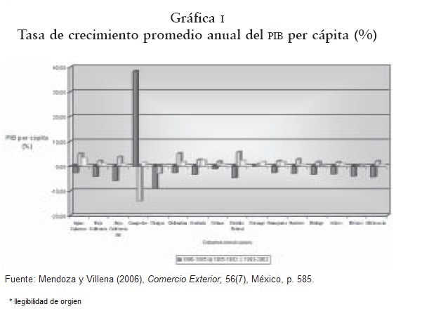 Al respecto, Mendoza y Villena (2006: 591) señalan que la dinámica económica se concentró en la región central del país integrada por el Estado de México y el Distrito Federal, en tanto que el norte y la zona del Golfo de México presentaron tasas de crecimiento moderadas. Sin embargo, a partir del acuerdo comercial la producción tomó fuerza en las entidades de la frontera norte debido a la cercanía con el principal socio comercial de México. Por su parte, las entidades del sur también se vieron afectadas con la entrada en vigor del tratado, toda vez que su crecimiento económico disminuyó de modo considerable. Esos efectos se debieron en gran medida a la localización geográfica así como a diversos aspectos institucionales propios de cada región.