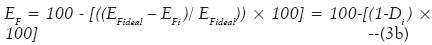 donde Ei: eficiencia o potencial de entropía en porcentaje; EFideal: valor ideal del indicador de EF; EFi: valor del indicador de EF durante el periodo analizado; Di: indicador del desarrollo para la región. EF proporciona información de la capacidad de las regiones para hacer más efectivo su crecimiento económico y su bienestar, y del mismo también puede deducirse el potencial de desórdenes (Pi en porcentaje) que posee la región a través de la relación