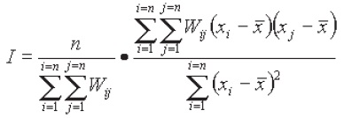 En cuanto a las técnicas estadísticas utilizadas, el coeficiente I de Morán (1950) es la técnica más frecuentemente utilizada en el análisis espacial inferencial.4 Esta técnica toma la siguiente forma matemática: