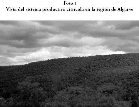 De acuerdo con el análisis de la información obtenida mediante la observación participante, la reforma de la PAC en el 2003 no sólo influyó en una reformulación de las estrategias de reproducción de los productores de Algarve, sino que las explotaciones que lograron adaptarse a la exigencia de la reforma realizaron importantes cambios estructurales en sus predios, estos cambios se evidencian en la incorporación de sistemas de riego sofisticados y desplazamientos de cultivos tradicionales, como el hortícola por cultivos más rentables como los cítricos (foto I). Las explotaciones que no se pudieron integrar a la dinámica competitiva de la región abandonaron la actividad agrícola o tuvieron que vender. Las pequeñas explotaciones que lograron sobrevivir tuvieron que conformarse con el apoyo económico institucional (subsidio), en un marco de pluriactividad e integrarse a la agroindustria local con arreglos beneficiosos en la mayoría de los casos para la agroindustria.