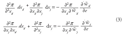 Para desarrollar un análisis de estática comparativa diferenciamos totalmente el sistema de ecuaciones en (2). Así se obtiene: