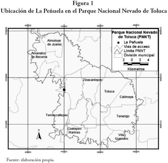 En estas circunstancias se planteó la necesidad de llevar a cabo una investigación que permitiera indagar, a nivel de localidad, las particularidades del desarrollo histórico de las actividades productivas. Dada la naturaleza de la investigación se eligió para tal efecto a la comunidad de La Peñuela, ubicada en la ladera occidental del Parque Nacional Nevado de Toluca. Se trata de un pueblo con una población cercana al medio millar de habitantes que comparte muchas de sus características con otros asentamientos rurales en torno al volcán Xinantécatl y con localidades de otros sistemas montañosos como la Sierra de las Cruces y la Sierra Nevada.