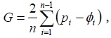 Donde pi y Φi son las coordenadas de los puntos en la curva de Lorenz y n es el tamaño de la población.