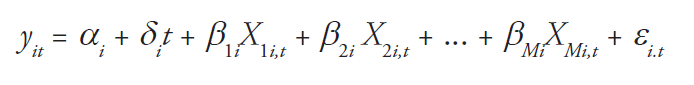 Xit = exogenous variables (geographical fixed effects and unit time trends)
