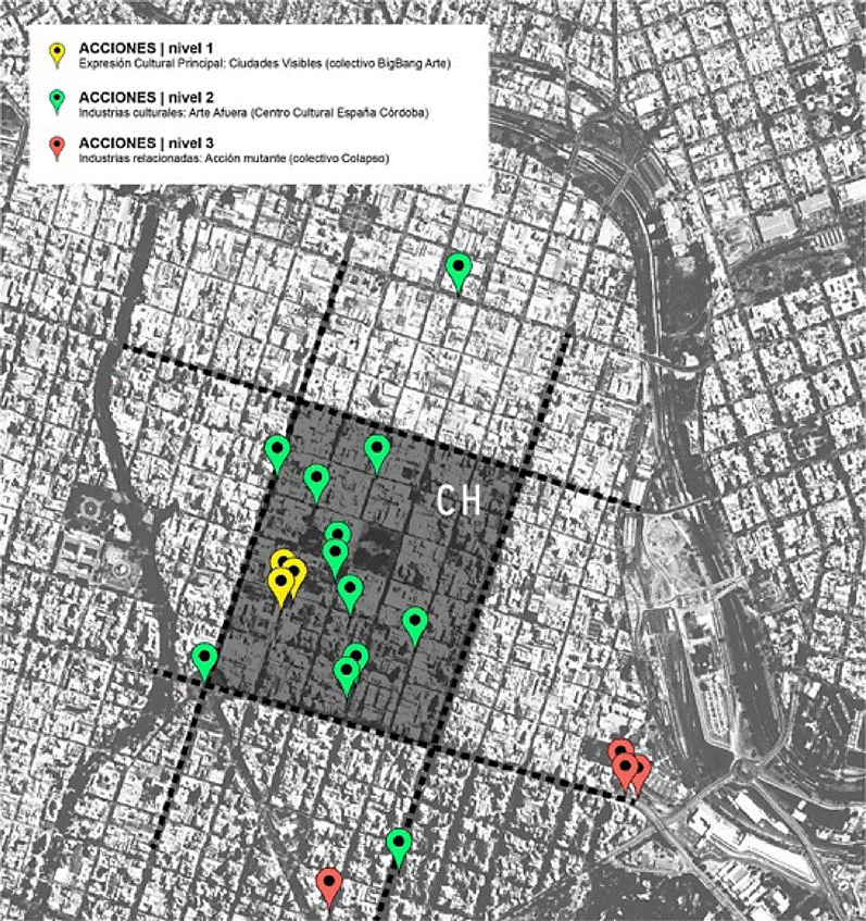 Figura 2 Localización de acciones analizadas en la centralidad histórica de la ciudad de Córdoba