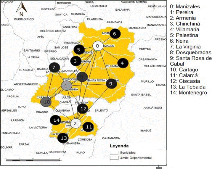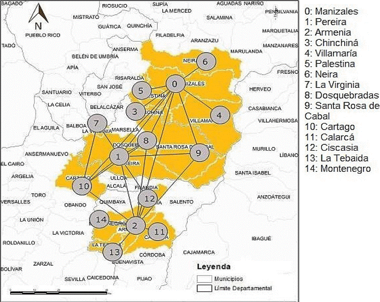Figura 2 Red de ciudades en la ciudad región Eje cafetero