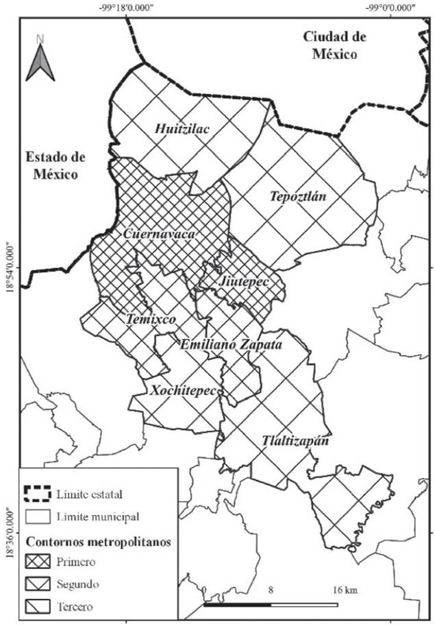 Mapa 1 Contornos de la ZMC, Morelos