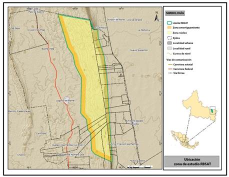 La RBSAT se localiza en la región Huasteca, al noreste del estado de San Luis Potosí, en los municipios de Ciudad Valles y Tamuín. Fue decretada como Reserva de la Biosfera el 6 de junio de 1994, con una superficie de 21,464 ha. Forma parte de la porción media este de la Sierra Madre Oriental, dentro de los límites del estado potosino. Geográficamente se ubica entre las coordenadas 22° 05’ 00’’ y 22° 24’ 22’’ LN y 98° 52’ 46’’ y 99° 01’ 00’’ LW (Durán Fernández, 2018) (figura 1).