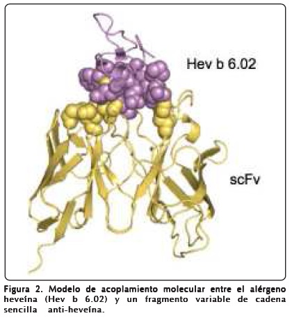 La alergia al látex del árbol de Hevea brasiliensis ha sido muy estudiada en las últimas décadas y, por lo tanto, se han realizado numerosos intentos para explicar el aumento en la incidencia de esta enfermedad. Recientemente se han logrado avances muy importantes en la expresión, purificación y caracterización molecular de varios alérgenos de hule natural; no obstante, la información estructural es aún muy limitada. El conocimiento de la estructura tridimensional, usando técnicas experimentales, facilita la identificación e incrementa la posibilidad de modificar epítopos conformacionales, que son importantes para el diseño de herramientas de diagnóstico y de agentes inmunoterapéuticos. Nuestro grupo de trabajo ha determinado dos epítopos conformacionales del alérgeno Hev b 2 (heveína) y un glicoepítopo del alérgeno Hev b 2 (β-1,3-glucanasa).