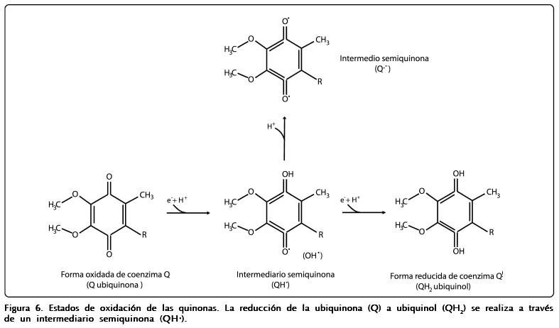 La generación de superóxido en el complejo III se lleva a cabo a través del ciclo Q (Fig. 4), el cual acopla la transferencia de electrones de la ubiquinona (Fig. 5) al citocromo c con la translocación de protones.