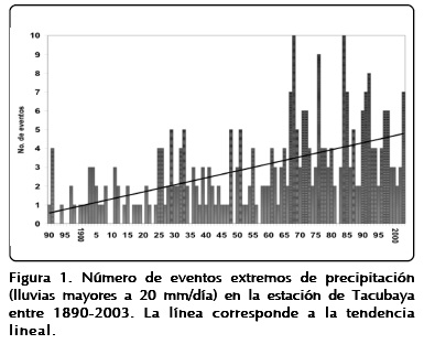 La precipitación en el Distrito Federal (D.F.) ocurre principalmente en los meses de verano, y el ciclo inicia en el mes de mayo, terminando en el mes de octubre. La precipitación del verano en el Valle de México está modulada en gran medida por el paso de ondas del este, que aportan un flujo de humedad del Golfo de México. El efecto orográfico de las montañas del poniente refuerza los movimientos ascendentes y con ello, la intensidad de la precipitación hacia esa zona. De acuerdo con Jáuregui (2000)2 y Pérez (2004)9, ha habido un incremento de precipitación extrema en las últimas décadas en la estación de Tacubaya (Fig. 1) y en gran parte del Distrito Federal.