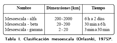 A diferencia de los procesos de escala sinóptica que están asociados a longitudes de onda mayor a miles de kilómetros y persistencia de días hasta semanas, la mesoescala presenta estructuras de dimensiones pequeñas y de duración que va de los minutos hasta días. Realizar pronóstico numérico de variables como temperatura, precipitación, viento y humedad relativa, en escalas menores a 20 km, obliga a trabajar en la mesoescala (Tabla I) analizando la dinámica de las tormentas en la región de estudio, el comportamiento de parámetros que detonan la convección, flujos de calor, humedad en la superficie y en distintos niveles de la atmósfera, el comportamiento de la turbulencia. Existen forzantes de impacto llamados parámetros estáticos como la topografía o el uso de suelo que determinan en gran medida las condiciones de mesoescala. Por ejemplo, el Distrito Federal presenta una orografía compleja y el uso de suelo ha sido modificado de forma acelerada desde la mitad del siglo pasado, lo que ha provocado un cambio en la dinámica de la atmósfera.