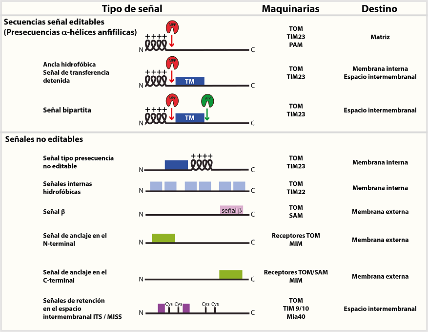 Las mitocondrias son organelos que muy posiblemente se originaron a partir de un proceso endosimbionte entre una Archea y una α-proteobacteria, afectando radicalmente a ambos organismos. Una de las consecuencias más importantes fue la migración de los genes del genoma del huésped al genoma hospedero; por lo que se hizo imperativo el desarrollo de diferentes sistemas de transporte y distribución de las proteínas mitocondriales, actualmente codificadas mayoritariamente en el genoma nuclear. De esta forma, las células eucariontes establecieron diversas maquinarias para la translocación e inserción de las proteínas mitocondriales en los diferentes subcompartimentos de este organelo. Como cualquier proceso celular, el transporte y la importación de proteínas a la mitocondria puede alterarse por diferentes factores. Conocer las respuestas celulares que se desencadenan ha sido un tema de gran avance en los últimos años, teniendo como corolario general que hay cambios transcripcionales y traduccionales que conllevan a la síntesis de proteínas que ayudan a contrarrestar los efectos del daño. La mayoría de las mutaciones en las subunidades que componen las maquinarias de translocación son letales; sin embargo, algunas de estas mutaciones son viables, aunque generan fenotipos severos en las personas que las poseen, subrayando la importancia del correcto funcionamiento de las mitocondrias.