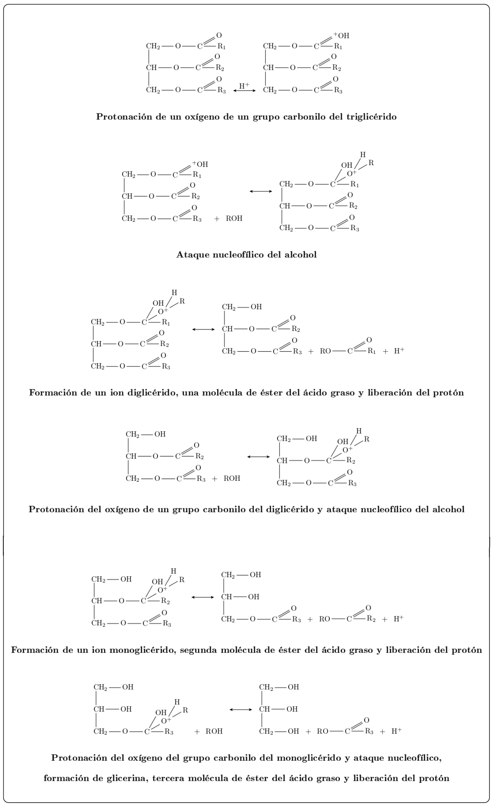 Mecanismo de transesterificación con catálisis ácida