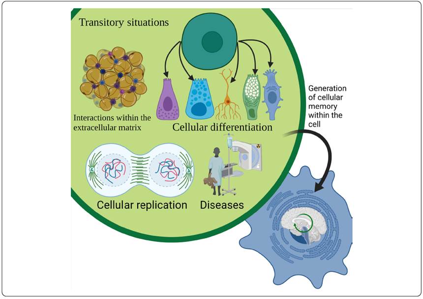 Memory can even be generated for more transcendental conditions that are difficult to repeat or remember under in situ conditions (Yang et al., 2014). This memory can be achieved through the cell’s ability to convert transient signals such as changes in extracellular matrix (ECM), presence or absence of other cells, and protein levels as they experience differentiation, healing, and disease progression into a memory encoded in the genome (Figure 3), allowing synthetic biologists to track various biological phenomena at the molecular level (MacDonald & Deans, 2016). This cell memory can also be generated by feedback in the circuit, allowing for stability, even if the feedback or input is no longer present. With the use of logic gates, a circuit can also be developed that remains active even if the input is not present, allowing its stability and memory for up to 90 generations. That memory and stability were achieved through the use of recombinases, which surrounded parts of the circuit that allowed the behavior of a specific logic gate, depending on which part was altered by the recombinase, through the inversion of promoters or ORF (Siuti, Yazbek & Lu, 2013).