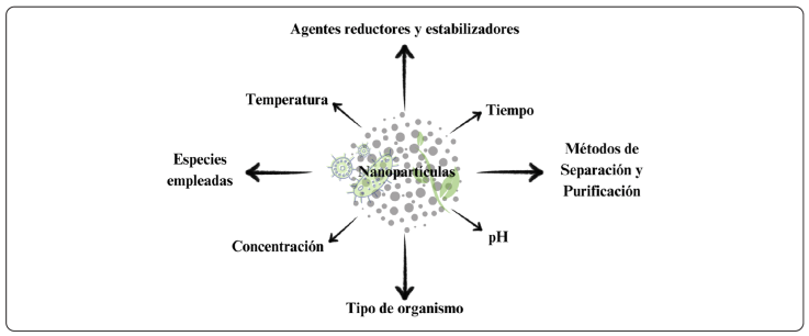 Figura 2 Factores que pueden afectar en las propiedades o el proceso de síntesis de las NPs.