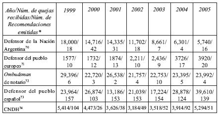 70 Incluye Recomendaciones particulares y generales, Cfr. Informes Anuales. www.defensor.gov.ar, consultada el 20 de septiembre de 2006.