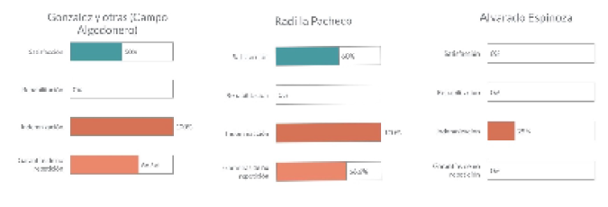 El Tribunal interamericano ordenó mayormente el cumplimiento de medidas de satisfacción,15 dentro de las que se encuentran la investigación y sanción de los hechos, así como la búsqueda y localización de las personas desaparecidas.16 Por otra parte, de la totalidad de medidas de reparación ordenadas por la Corte IDH, en los tres casos, el menor número corresponde a las medidas de rehabilitación.