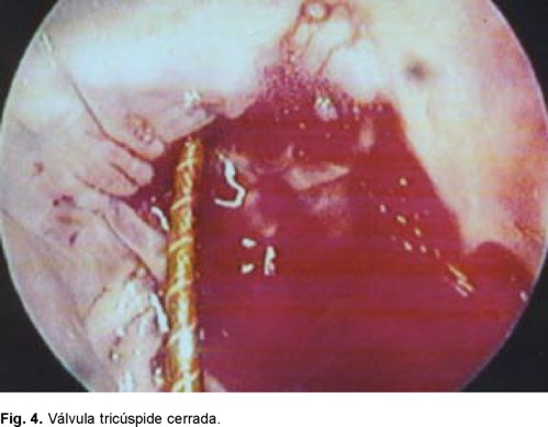 Desde el punto de vista quirúrgico, queda abierta la pregunta, ¿qué tratamiento es el adecuado cuando existe patología tricuspídea? Esta es la situación del caso que se presenta en las Figuras 1, 2, 3 y 4, en donde sólo existía dilatación moderada del anillo y que sin embargo fue llevado a cambio valvular. Acar4 y Gómez Durán5 se hacen la misma pregunta y su respuesta es la misma, la conservación de la válvula tricúspide.