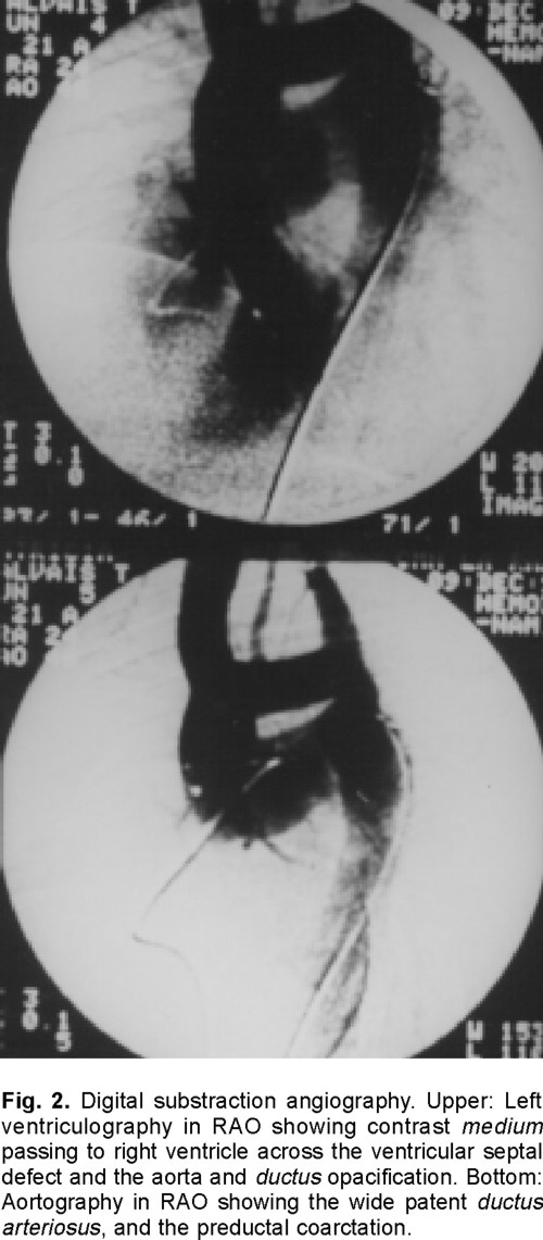 Key words: Giant ductus arteriosus. Ventricular septal defect. Aortic coarctation.