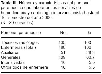 Con relación al personal paramédico, identificamos 105 técnicos radiólogos y 180 enfermeras de las cuales, la mayoría (60.7%) son enfermeras generales (Tabla III).