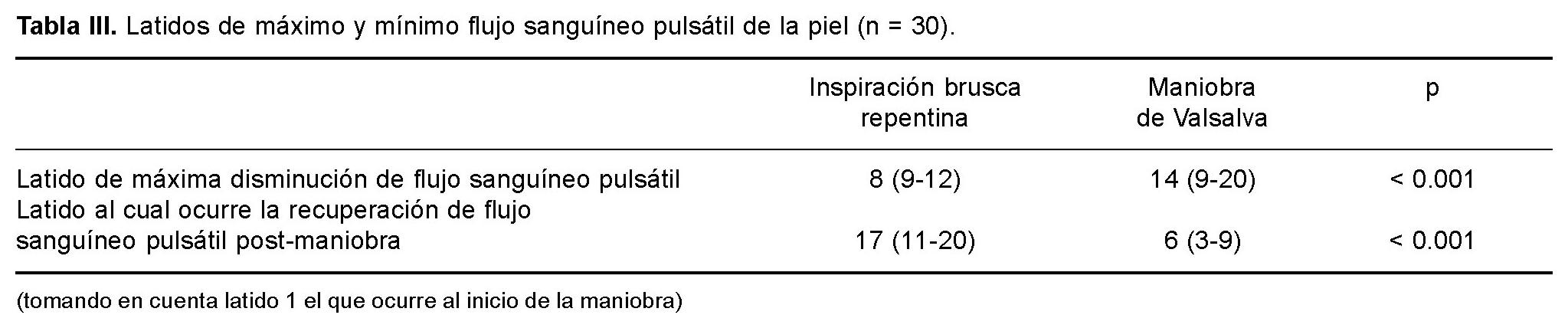 Objetivo. El objetivo general de este estudio fue establecer parámetros de normalidad en sujetos de población mexicana para estandarizar el método de variación del FSP y la RSC en 4 instancias: 1. respiración espontánea (RE), 2. respiración rítmica (RR) de 10 seg. (6 por minuto), 3. inspiración profunda repentina (IPR), 4. maniobra de Valsalva (MV).