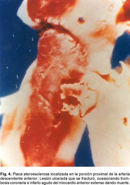 Lo más trascendente es que nos obliga a abrir la mente en aspectos terapéuticos que antes no se consideraban relevantes en la clínica. Tal es el caso al referirnos a los procedimientos más utilizados hoy día para resolver la problemática de arterias epicárdicas ocluidas en el infarto agudo del miocardio o parcialmente obliteradas como en la angina inestable. Si bien la primera meta de la reperfusión en el IAM ha sido obtener flujo TIMI - 3 epicárdico, ésta no parece ser hoy día el solo punto terapéutico final deseado.111 Ya que lo que es óptimo es alcanzar también una perfusión normal a nivel miocárdico y que incluye como premisa la permeabilidad completa de la microcirculación, para entonces decir que se alcanzó flujo TIMI - 4 o miocárdico. Ésta es una de las razones por la que con los métodos modernos de reperfusión no es posible reducir la mortalidad del IAM a cifras cercanas al cero. Con los comentarios hechos previamente también queda claro que hay otros aspectos que están vinculados a la propia reperfusión: el daño ocasionado por ésta, el fenómeno de no flujo, el miocardio aturdido, el hibernante y aspectos aún desconocidos como es la consecuencia de liberar la propia obstrucción microvascular. Patologías isquémicas que tienen un punto inicial de partida: la placa aterosclerosa vulnerable que sufre erosión o fractura (Fig. 4). Situación que deja expuesta la matriz subendotelial y en donde su principal contenido de masa oclusiva es la plaqueta [trombo blanco], mas hay trombosis también donde predominan los glóbulos rojos, con oclusión completa o subtotal en un proceso no estático en sus componentes y que a su vez da origen a los síndromes coronarios agudos de infarto con o sin elevación del segmento ST.109 Es así como en su evolución se ha identificado el fenómeno de la microembolización con alojamiento de estos fragmentos plaquetarios y del contenido de la matriz en los microvasos coronarios distales, proceso que antes se consideraba como una condición no frecuente. Este mecanismo se ha vinculado como una de las posibles causas por la que se generan arritmias y es causa de episodios de muerte súbita.107,108 Es de llamar la atención que no hay muchos estudios importantes donde el área histológica relacionada con el infarto se ha investigado sistemáticamente en el post mortem de estos sujetos. Aspecto que se puede considerar como una deficiencia en nuestros conocimientos actuales, particularmente cuando la terapia trombolítica o la de reperfusión de la ARI con catéteres son nuestros principales métodos terapéuticos para la atención del IAM y ambos son capaces de promover la embolización (Fig. 5). Los PCI se iniciaron hace más de dos décadas y durante todo este tiempo hemos subestimado la posibilidad de que esta situación patológica o bien se le ha considerado muy rara o sólo era conferida al terreno de los injertos de safena añosos y degenerados cuando éstos eran manipulados con catéteres.112 Porqué no nos hemos hecho la pregunta antes: ¿qué sucede con el material de la placa ateromatosa al ser instrumentada? En realidad es hasta hace poco que la opinión de lo raro o lo frecuente de la posibilidad de embolización a la microcirculación ha sido posible contestarla y poder decir si en realidad esta situación derivada del manejo medicamentoso farmacológico o del intervencionismo es trascendente, o bien es irrelevante.