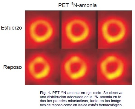 Las imágenes de perfusión miocárdica mediante PET con 13N-amonia han mostrado ser un método altamente sensible (94-98%) y específico (95%-100%) para la detección de enfermedad arterial coronaria, superior a la tomografía por emisión de fotón único (SPECT) tanto en precisión diagnóstica como en calidad de imagen.1 Así mismo, la elevada fracción de extracción de la 13N-amonia permite identificar isquemia leve de manera más precisa que con el empleo de trazadores SPECT como el Tc-99m, cuya fracción de extracción es menor.