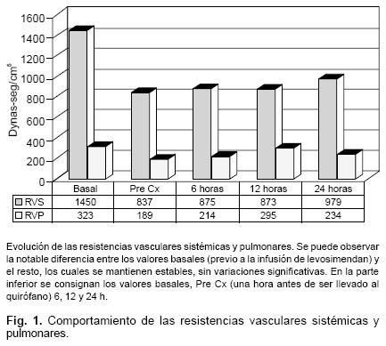 En cuanto analizamos lo sucedido en el postoperatorio, encontramos que las RVS y RVP presentaron valores inferiores a los basales con un comportamiento muy aceptable, sin variaciones importantes, y que generalmente no se requirió de importante apoyo vasopresor (noradrenalina).