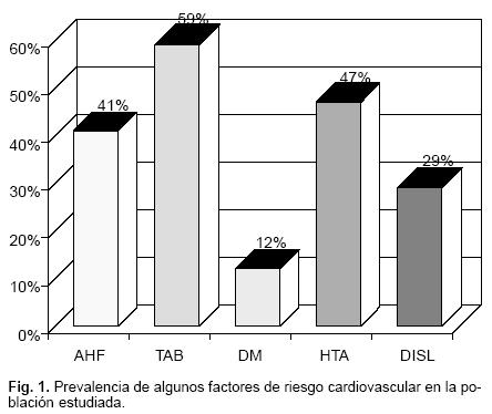 Se estudiaron un total de 17 pacientes de ambos géneros, de los cuales 4 fueron mujeres y 13 hombres. La edad media de los pacientes fue de 51±14 años. Los principales factores de riesgo cardiovascular encontrados en la población estudiada se muestran en la Figura 1.