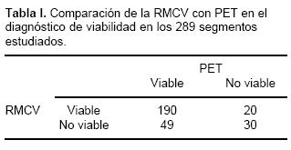 Conclusions: MRI is an adequate technique to determine viability since it has good correlation with PET. This is the first study realized in Latin America that compares PET and MRI in the diagnosis of myocardial viability.