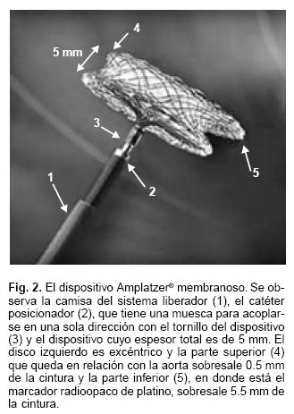 El dispositivo Amplatzer® membranoso es un nuevo oclusor de comunicación interventricular perimembranosa cuyo diseño permite el cierre de estos defectos con una técnica de carga, posicionamiento y liberación sencilla, en un tiempo relativamente corto y con seguridad para el paciente.
