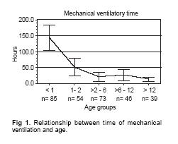 Patients: A total of 318 consecutive patients <18 years old who underwent cardiovascular surgical procedures for congenital heart defects were enrolled in this study. Of these, 297 patients were admitted to the intensive care unit with respiratory support and 2.8% required prolonged mechanical ventilation (MV) > 120 hours.