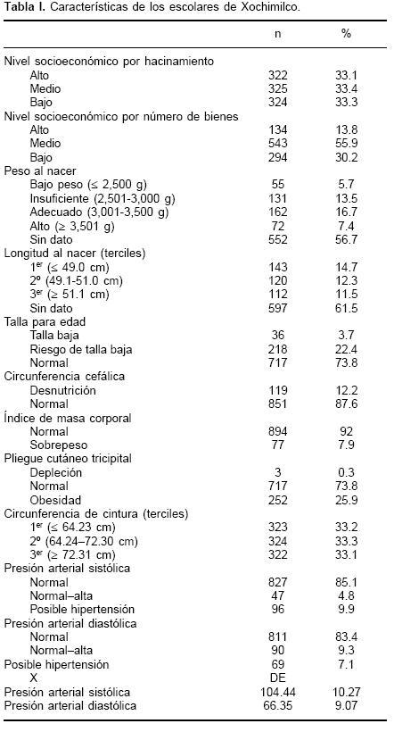 Material and methods: It is a crosssectional, observational and analytic study. During the elective year 20032004, 972 students of Xochimilco county was studied. The independent variables was age, sex, intrauterine and infant growth, body mass, body fat and socioeconomic status. It was assessed the relationship between the independent variables and the values of blood pressure by a logistic regression model.