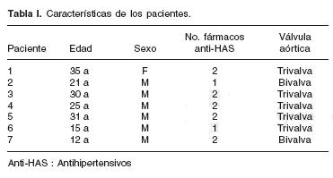 Sólo 2 (28.5%) pacientes presentaban aorta bivalva (Tabla I).