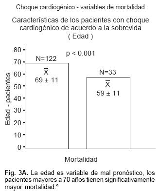 También desde el punto de vista clínico es muy importante la valoración ecocardiográfica ya que es un método no invasivo, nos brinda información sobre la movilidad segmentaria y global, parámetros de función sistólica, como es la fracción de expulsión (FE) y diámetros ventriculares, además de valorar la respuesta terapéutica y brinda información sobre la probable reversibilidad del daño miocárdico. Otro aspecto clínico muy importante de valorar es el tiempo de evolución que tiene el CHC, mientras más tiempo tenga de haberse instalado el pronóstico es más malo ya que la repercusión sistémica (daño, pulmonar, renal y respuesta inflamatoria) será más grave y llega a ser irreversible y por lo tanto las maniobras terapéuticas en esta condición llegan a ser infructuosas. Cuando las complicaciones extracardíacas existen aumentan en forma significativa la mortalidad, como lo podemos observar en la (Fig. 2).9
