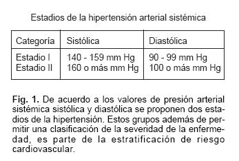 La clasificación de la HAS en diferentes estadios, mostrados en la Figura 1, permite detectar aquella población susceptible de un mayor riesgo cardiovascular que requieren de un tratamiento más enérgico al mismo tiempo de que trata de asegurar las metas del tratamiento antihipertensivo.
