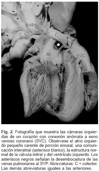 El estudio de la presente casuística permitió conocer con detalle los rasgos más relevantes de esta cardiopatía cuyo conocimiento anatómico es de gran utilidad para comprender la fisiopatología y el cuadro clínico; además constituye el marco referencial para interpretar con precisión el diagnóstico por imagen (ecocardiográfica, cardioangiográfica, tomografía computarizada y resonancia magnética nuclear). Se resaltan tres aspectos centrales en el diagnóstico morfológico: sitio de la conexión anómala, sitio y tipo de obstrucción del colector venoso y tamaño de la comunicación interatrial; este conocimiento es de gran utilidad para la planeacion de las estrategias quirúrgicas. En el dextroisomerismo siempre está presente esta malformación, la cual se suma al conjunto variado de alteraciones cardíacas presentes en este situs lo que agrava el cuadro clínico y ensombrece el pronóstico.