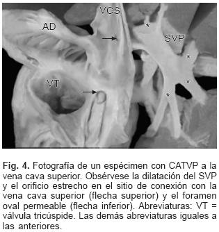 En el dextroisomerismo siempre está presente la CATVP; en esta condición ambos atrios tienen estructura morfológica derecha, y pueden ocurrir conexiones anómalas a venas cava superior, vertical y porta, mientras que está ausente la conexión a seno venoso coronario ya que esta cámara cardíaca no existe en este situs simétrico que presenta múltiples malformaciones cardiovasculares.