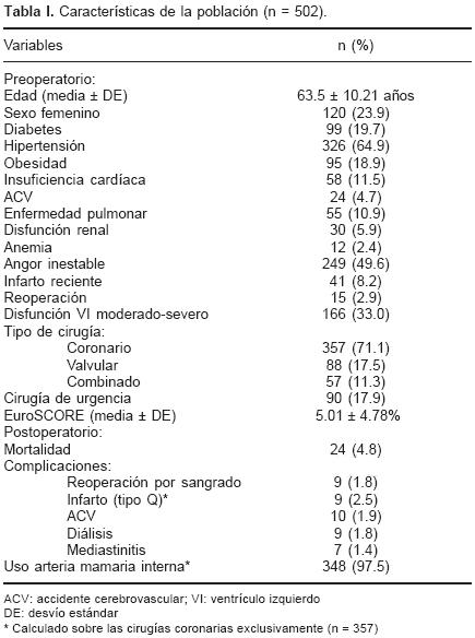 En la Tabla I se resumen las características preoperatorias de la población, junto a sus tasas globales de complicaciones y mortalidad. La curva VLAD que analizó la mortalidad ajustada con el EuroSCORE (Fig. 1), muestra la oscilación por encima y por debajo del valor basal, y se señalan a su vez, dos "conglomerados" de resultados adversos ocurridos en sendos períodos de tiempo.
