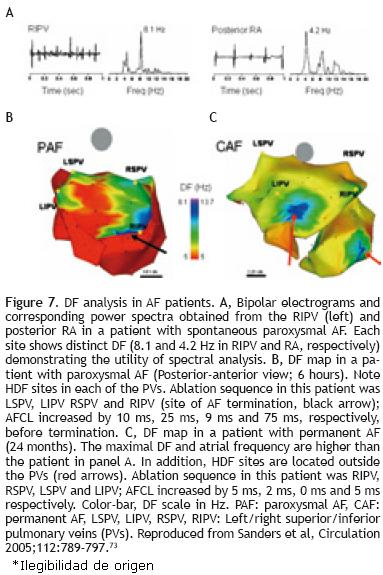 73. Sanders P, Berenfeld O, Hocini M, et al. Spectral analysis identifies sites of highfrequency activity maintaining atrial fibrillation in humans. Circulation 2005;112:789797. [ Links ]