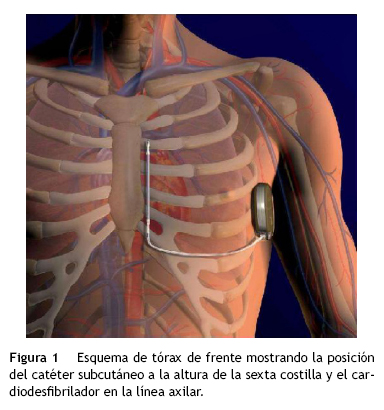 El implante de un cardiodesfibrilador (CDI) se ha transformado hoy, en un procedimiento similar al de un marcapasos. Sin embargo, persisten inconvenientes relacionados principalmente a las vías vasculares en pacientes que portarán el equipo por muchos años, y también merecen una consideración especial los niños y jóvenes, algunos con anomalías de formación del sistema venoso. En tal sentido, puede resultar de utilidad el equipo desarrollado por Bardy y colaboradores para un implante totalmente subcutáneo, incluso sin necesidad de fluoroscopia, ya que el mismo se realiza por marcas anatómicas. El electrodo tripolar se ubica en el tejido celular subcutáneo paralelo al borde esternal izquierdo, y luego paralelo a la quinta o sexta costilla, el generador a la altura de la línea axilar. El equipo puede efectuar una descarga máxima de 80 Joule (J), pero se admite 65J para tener un margen de seguridad adecuado. La tolerancia de los pacientes fue buena. Las pruebas realizadas hasta el presente muestran factibilidad y buenos resultados. Sin duda son necesarios estudios más amplios, aleatorizados, multicéntricos y prospectivos.