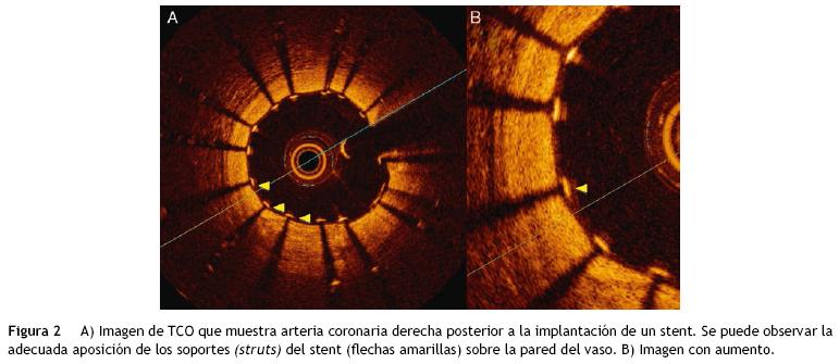 La TCO puede ser utilizada tras la implantación del stent para evaluar su adecuada aposición a la pared y para obtener información acerca del daño vascular causado por el implante.