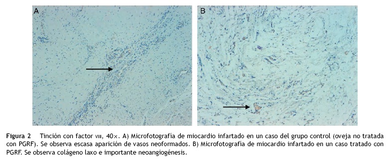 Results: Noteworthy is the formation of new vessels in hematoxylin-eosin-stained sections and factor VIII in plasma rich in growth-factors (PRGF)-treated hearts.