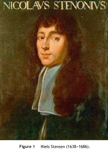 Niels Stensen (1638-1686) (Fig. 1) was born on January 10th, 1638 in the Danish capital of Copenhagen.1 Stensen was educated as a Lutheran, receiving wise teachings from family friends. Having successfully completed his secondary and preparatory courses, he enrolled in the medical faculty of the local university. His professor and tutor was Thomas Bartholin, a specialist in the field of blood circulation and lymphatic function in animals and humans. At the same time, Niels frequented the Ole Borch laboratory and accompanied Bartholin on botanical excursions to the city's outskirts.