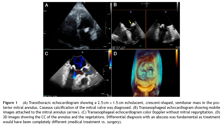 Palabras clave: Calcificación caseosa del anillo mitral; Endocarditis; Ecocardiograma 3D.