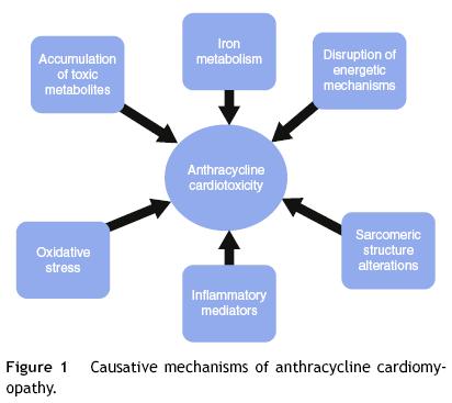 Diverse mechanisms have been involved in anthracycline cardiotoxicity, none of which are capable of causing the whole clinical picture by itself. Traditionally, reactive oxygen species (ROS) have received more attention, although recently basic research has proven other factors to be as important as ROS. These factors mainly involve sarcomeric structure disruption, toxic accumulation of metabolites, iron metabolism, energetic alterations and inflammation.