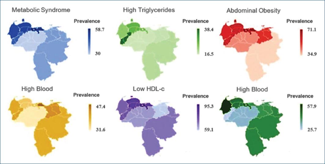 Cardiovascular disease (CVD) was responsible for 31.8% of all deaths in Venezuela in 2017 and has increased by 10.8% in the past decade1 prompting an urgent call for action to implement population-based preventive strategies. Regional adaptation of diagnostic criteria and tools is a mandatory step to implement tailored interventions to reduce CVD burden. For example, using all available data from Asian countries, the World Health Organization recommends lowering body mass index (BMI) cut-points to 23-27.5 kg/m2 as overweight and BMI ≥27.5 kg/m2 as obese, to promote early public health action for Asians2. Complications related to Adiposity-Based Chronic Disease (ABCD)3 are the major modifiable risk factors that underlie CVD, increasing the risk for hypertension, insulin resistance (or Stage 1 dysglycemia-based chronic disease [DBCD]4, and dyslipidemia, which can be viewed as a cluster known as metabolic syndrome (MetS)5. MetS also involves various residual risk factors, such as inflammation, atherogenesis, and platelet hyper-reactivity (prothrombotic state), which independently or together increase the risk for coronary artery disease6, stroke, type 2 diabetes (T2D)7, and cancer5,8.