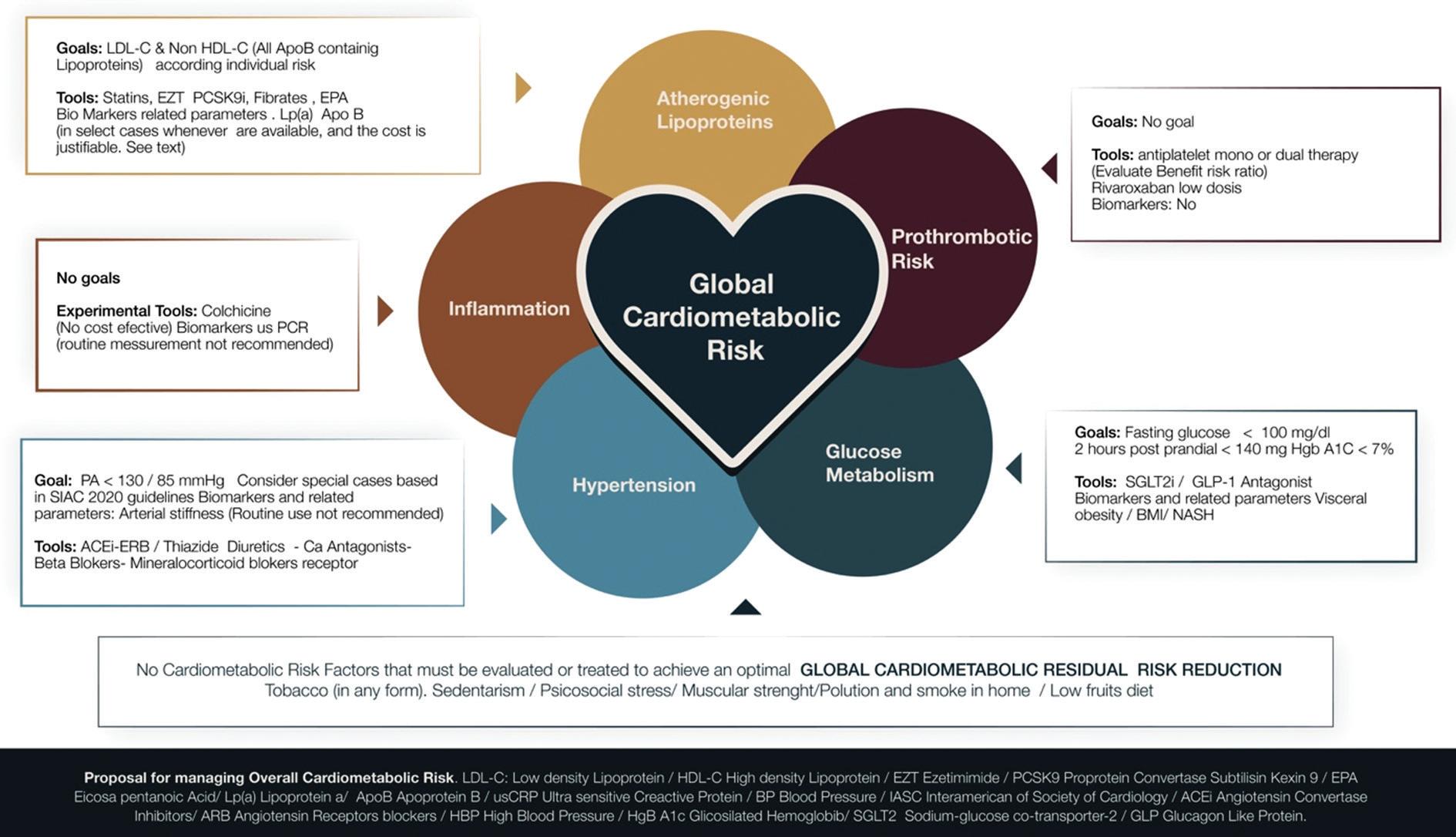 Based on the foregoing, the ALALIP (Latin American Academy of Lipidology and CM Prevention), together with IASC, IAS, and PCE, convened a group of experts from the Americas, based on their clinical expertise in: cardiology, cardiovascular prevention, and CM diseases, to develop practical recommendations for the optimal evaluation and treatment of CM risk factors in Latin America. The process was well defined to avoid conflicts of interest that could bias the discussion and recommendations.